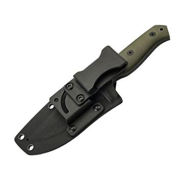 Der ergonomische Griff aus olivgrünem G10 bietet eine hervorragende Ergonomie. Die drei Nieten im Griff und sein leichtes Zier-Ricasso auf der Rückseite der Klinge setzen einen dekorativen Akzent.