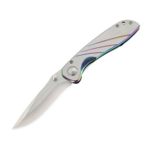 Elegant 11.3 cm "rainbow" coloured steel handle with clip.