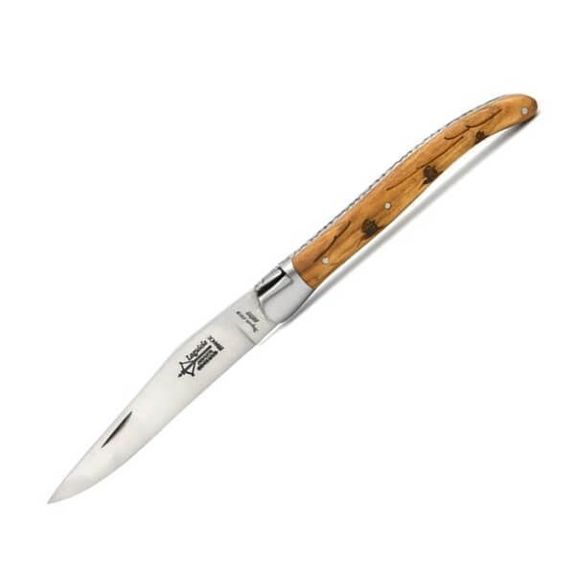 G.David Laguiole folding knife with 12cm olive wood handle and woodcock motifs.