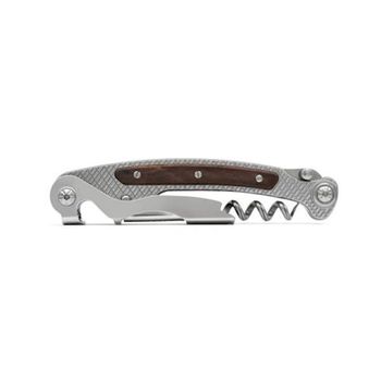 MASERIN 3-piece sommelier knife (capsule-cutting blade, lever, corkscrew), 12 cm stainless steel handle with santos wood plates.