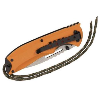 EDC folding knife with a Drop Point shaped blade in 420 stainless steel with a black coating to protect the blade, as well as a clip with an internal notch and thumb lugs.
