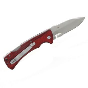 AISI 420 steel blade with nail nick opening for easy opening. Drop Point blade shape, blade unlocked by Backlock.