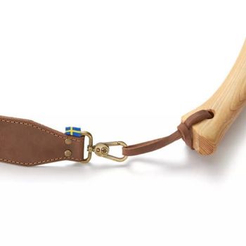 Attaches to the axe with snap hooks at each end of the strap. The strap is extra wide over the shoulder to distribute the weight and make it comfortable to wear. One end attaches to the handle hole via an extra leather strap included, the other end attaches to the axe sheath. (Only newer sheaths have attachment holes.) The strap is made in Sweden from Swedish cowhide, and is manufactured with the utmost respect for animals and the environment. The leather is full-grain vegetable-tanned for maximum durability.