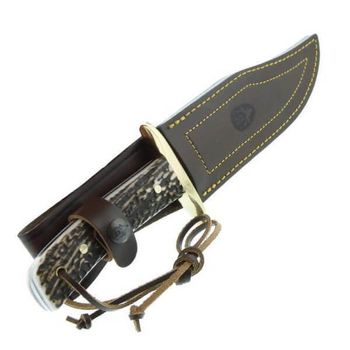 Delivered in a stitched leather sheath with Muela logo and snap to keep the knife in the sheath.