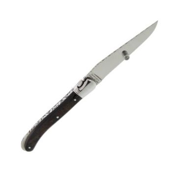 While retaining the traditional forged bee shape of the Laguiole knife, a precision mechanism allows the blade to be locked securely when open.