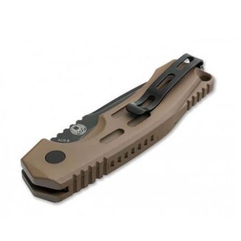 Robust milled aluminium handle in coyote colour for a comfortable and safe grip.
