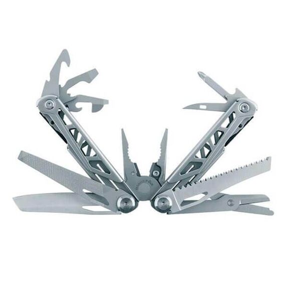 Diese Multifunktionszange ist aus 420er Edelstahl mit einem satinierten Finish. Griff mit Loch zum Mitnehmen.