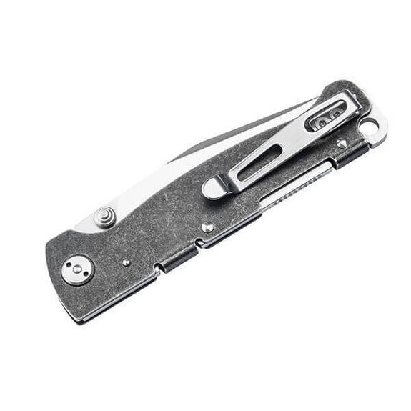 Stonewashed black steel handle.