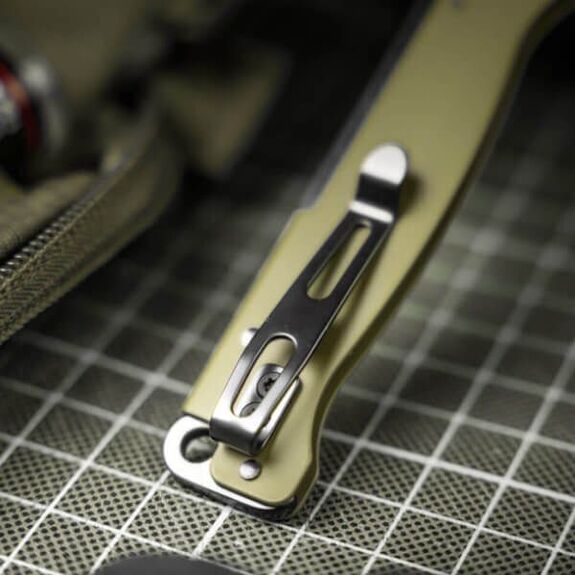 An EDC knife with two-handed opening and a fingernail notch. It is robust and stylish, ideal for outdoor enthusiasts or everyday carry.