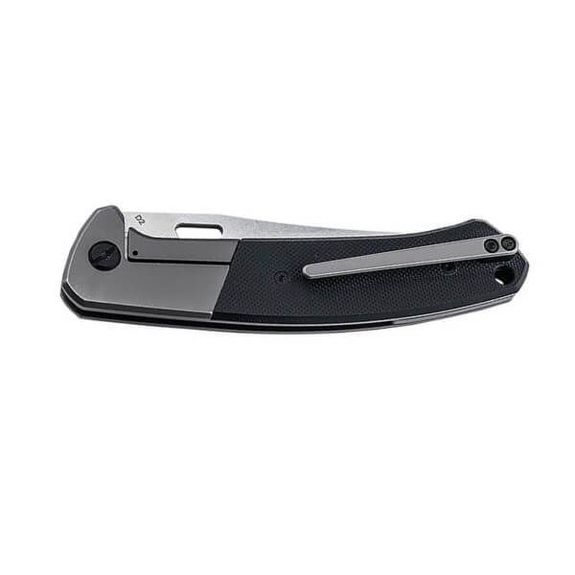 Smooth, drop-point D2 steel blade. Opens with the thumb.