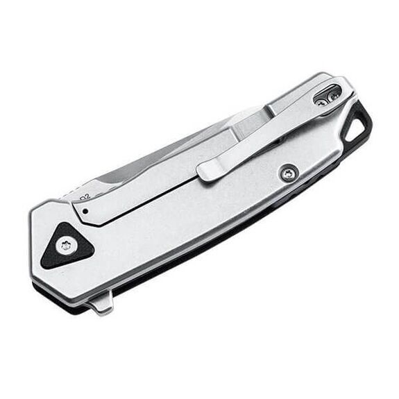 Featuring a stainless steel frame-lock construction and a ball-bearing mounted drop-point blade made of robust and wear-resistant D2 steel. It has a quick-opening system and a reliable, precise stonewashed blade.