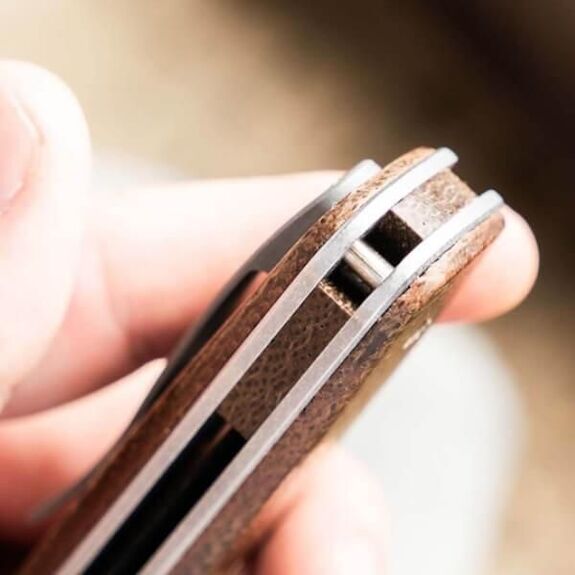 A tanto-shaped blade in ball-bearing VG-10 steel for everyday use, this is the knife for you. A stonewash blade to hide scratches. The flipper disappears completely between the stainless steel plates once the knife is open.
