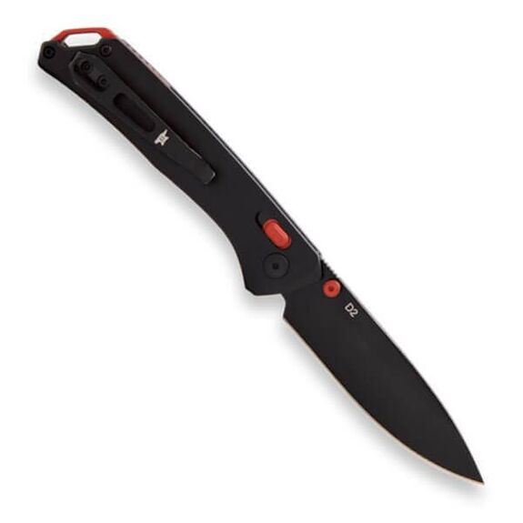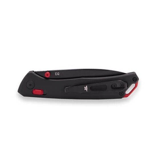 Its Drop Point blade, made from durable D2 steel, offers high strength and excellent edge retention. The crossbar lock ensures reliable, one-handed opening and closing for both right- and left-handed users, and keeps the blade securely in place. Can be opened using thumb studs.