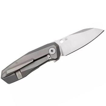 A handle made from 6AL-4V titanium with faceted bevels to improve the knife's ergonomics.