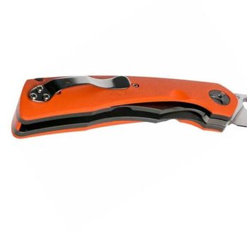 13 cm Titanium/G10 orange handle with milled titanium liners.