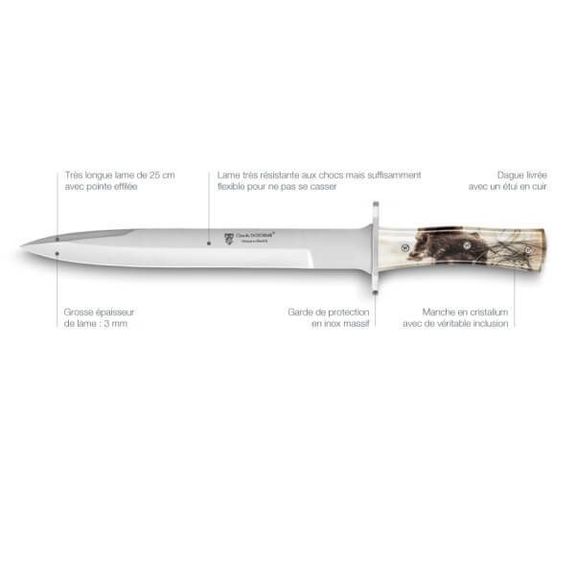 A perfect dagger for hunting, with a thin blade to avoid damaging the skin when piercing the game.