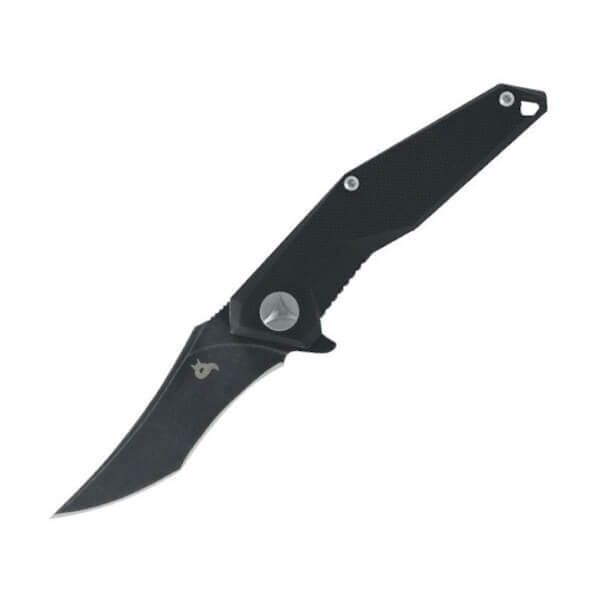 Lame en acier inox 440C dureté 57-59HRC avec revêtement blackwash et flipper.