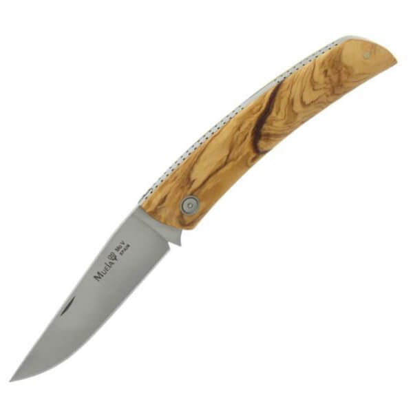 Le manche en bois d'olivier est enjolivé par un ressort ciselé.
