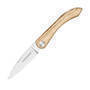 Une lame en acier X50CrMoV15 très tranchante et facilement réaffûtable de forme Drop Point avec double garde en inox massif. Logo Claude Dozorme gravé sur la lame.