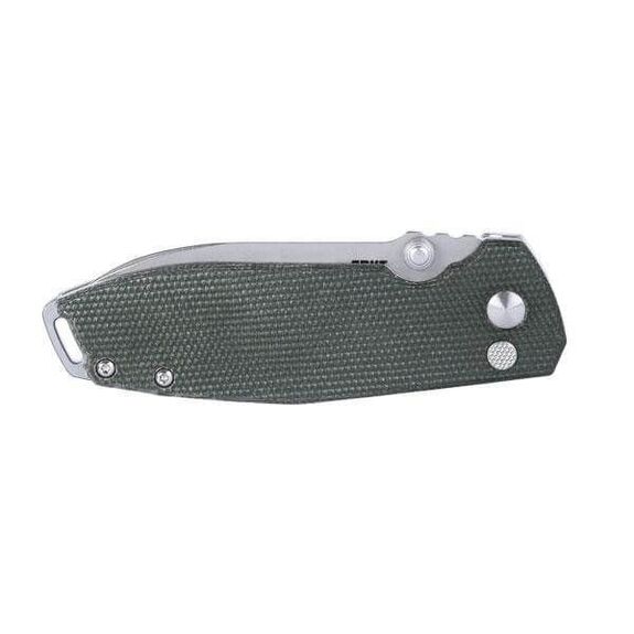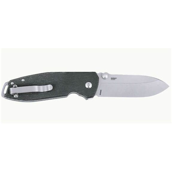 Une lame forme Drop Point lisse en acier inox D2 avec flipper à cran intérieur et une finition stonewashed pour masquer les rayures et les reflets. Excellente résistance à la corrosion et s'affûte facilement. Ouverture fluide à une main grâce à un ergot de pouce accessible, associé à des roulements à billes IKBS™ au niveau du pivot.