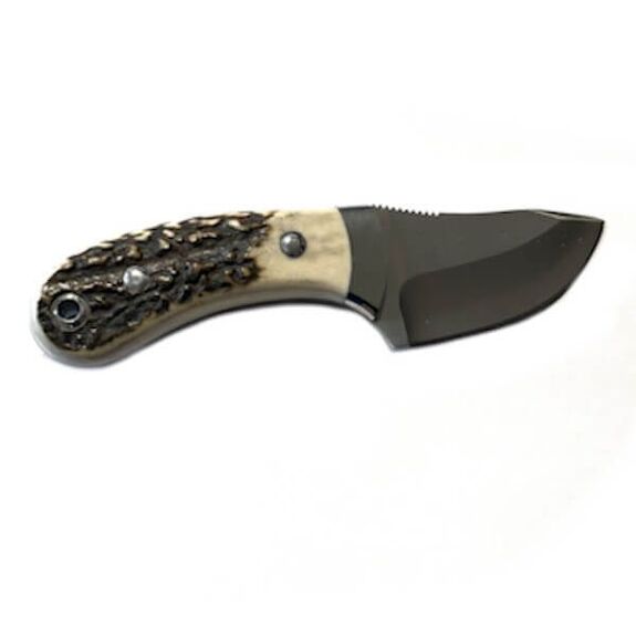 Der perfekt geformte Griff liegt angenehm in der Hand und verfügt über eine Fehlschärfe, die es ermöglicht, den Zeigefinger auf der Klinge oder dem polierten Hirschhorngriff abzulegen.