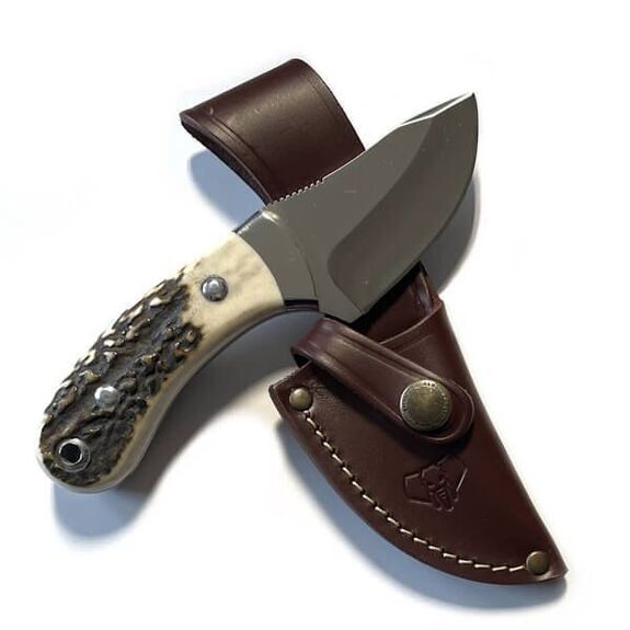 Ein kleines, robustes Outdoormesser für die Jagd und andere Outdoor-Aktivitäten. Die Klinge aus Molybdän-Vanadium-Stahl in Skinner-Form ist poliert und trägt das Cudeman-Logo auf einer Seite.