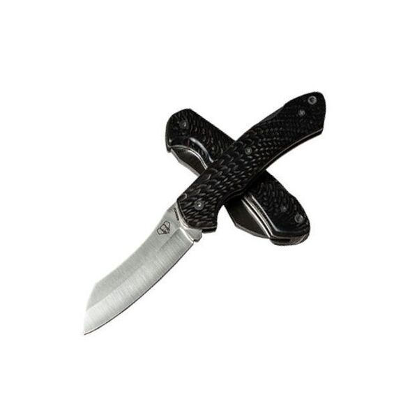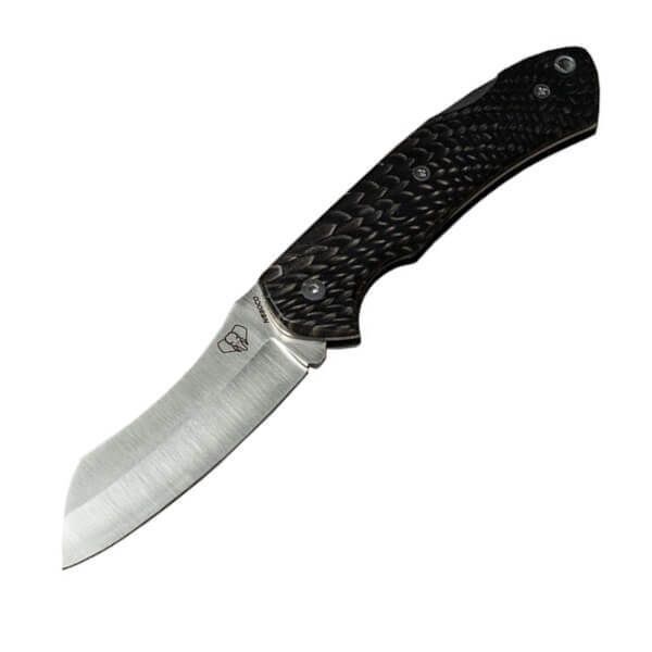 Eine weiße Klinge in Schafsfußform aus Böhler N690Co-Stahl (60-61 HRC) mit satinierter Oberfläche und polierten Kanten, Cudeman-Gravur auf der Klinge. Lässt sich leicht schärfen und bleibt lange scharf.