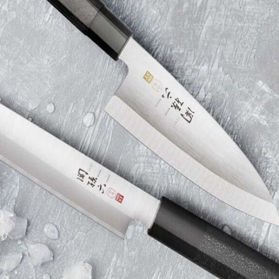 The Deba is a Japanese kitchen knife with a protruding blade, used for working with fish or chopping meat. It is a heavy knife with a pointed blade measuring 11 to 23 cm in length. Its front section is ideal for filleting whole fish. It can also be used in place of a mincing knife.