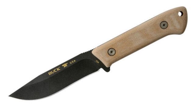 11,5 cm lange Klinge mit Tropfpunkt aus Kohlenstoffstahl 5160 Härte 58 HRC mit schwarzer Cerakote®-Pulverbeschichtung.