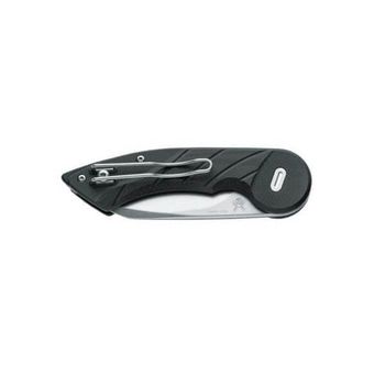Finger Safe" opening, a pin at the top of the handle, placed in a semi-circle, can be rotated upwards and the blade locks into place.