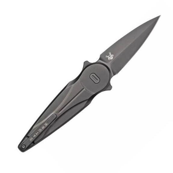 10cm titanium handle with black PVD coating. Excellent ergonomics.