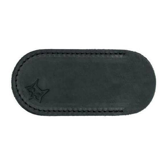 Supplied with a black leather sheath with stitching and Fox logo.