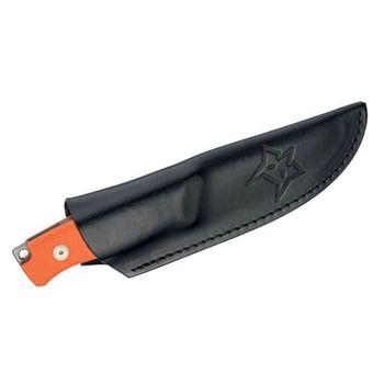 Stitched black leather sheath with Fox logo.