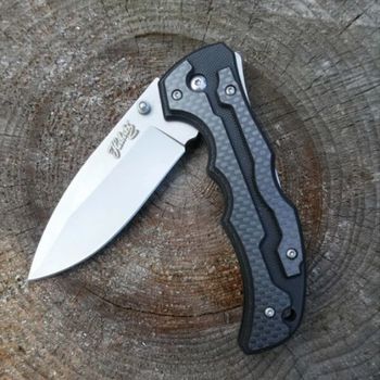 Modern knife design and superb materials are combined in this pocket knife from the Herbertz Selection range. The sandblasted Drop Point blade made from AISI 440 stainless steel is reliably locked by a rear locking mechanism. The black G10 handle and carbon fibre supports make the knife light and durable. Thanks to its ergonomic design and pronounced finger grooves, the knife fits comfortably in the hand. A folding pocket clip and lanyard loop complete the package.