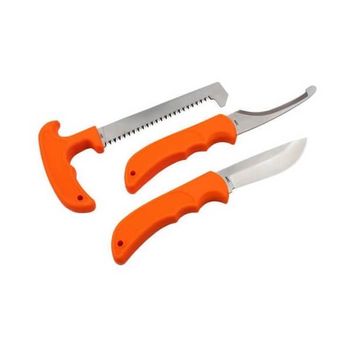 Ein kombiniertes Set aus drei unverzichtbaren Jagdwerkzeugen, einem Universalmesser, dem Ausweichmesser und der Säge in einem Nylonkoffer und Gürtelschnalle.