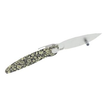 K2® EDC pocket knife, floral design, Z40C13 steel blade, bead blasted, with K-Lock® locking system, 11.5 cm stainless steel handle, bead blasted, floral design, 3D printed cover with clip.