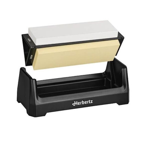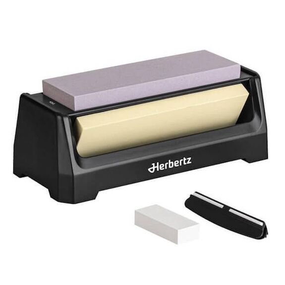 Kit d'aiguisage Herbertz sur socle et pratique pour couteaux et ciseaux.