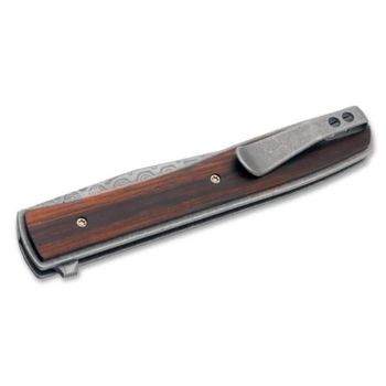 Taschenmesser Boker Plus Urban Trapper Version Cocobolo gezeichnet von Brad Zinker aus Damaszener Stahl.