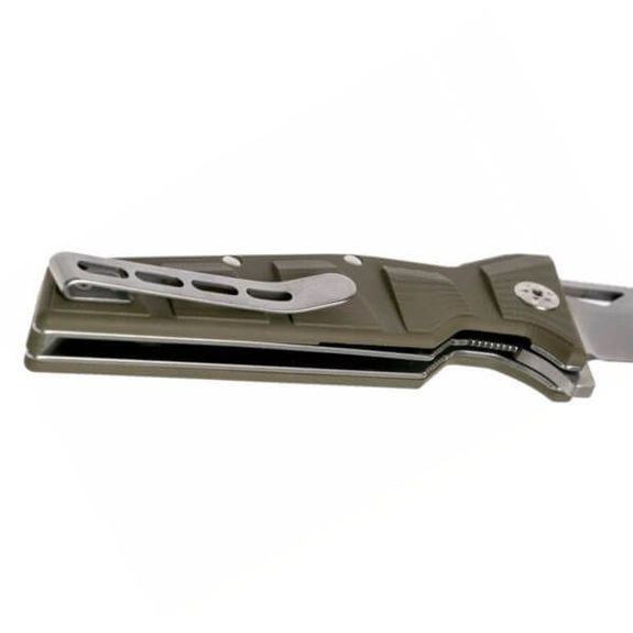 Das Messer ist aus leistungsstarken und widerstandsfähigen Materialien gefertigt und ist leicht und schneidet wie eine Rasierklinge. Die Klinge wird mit einem Frontflipper geöffnet.