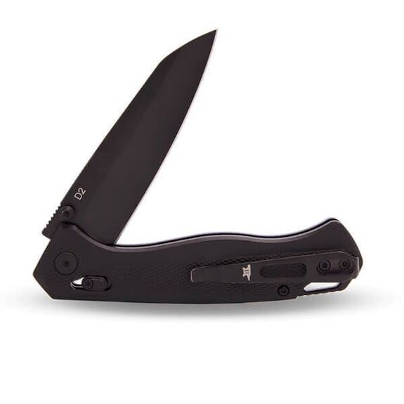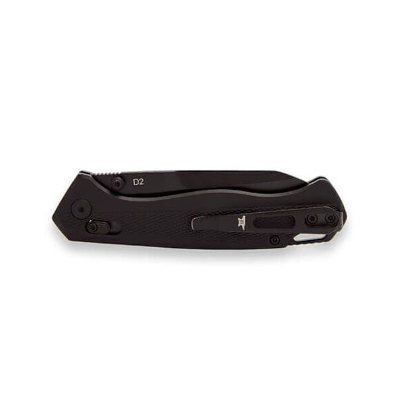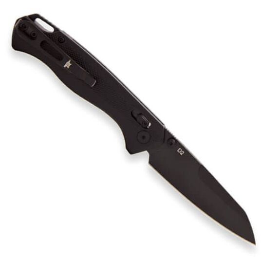 Sa lame forme Tanto inversée en acier D2 à revêtement en oxyde noir durable offre une grande résistance et un excellent maintien du tranchant. Le verrouillage par barre transversale assure une ouverture et une fermeture ambidextres fiables d'une seule main et maintient la lame en place en toute sécurité. Ouverture possible avec ergots de pouce.