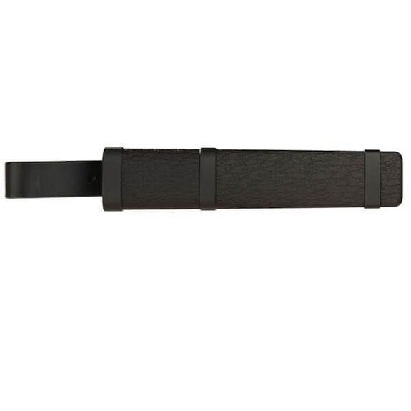 Symmetrische schwarze Scheide. Das Messer sitzt tief in der Scheide und bietet so mehr Sicherheit.