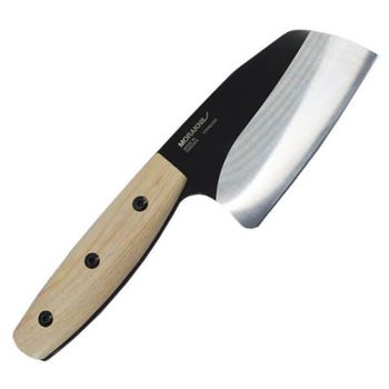 The ergonomic handle made of unique ash wood has a 2.5 mm thick black knife blade made of recycled Swedish stainless steel, which together provide balance and stability with every cut. Thanks to the handle geometry, a variety of flexible handles are possible, which can be useful when you need to divide, chop, slice or peel. The black PC coating creates a balanced contrast between the light ash wood and the shiny steel edge. The vegetable-tanned leather sheath protects the cutting edge from surfaces that can make the knife dull.