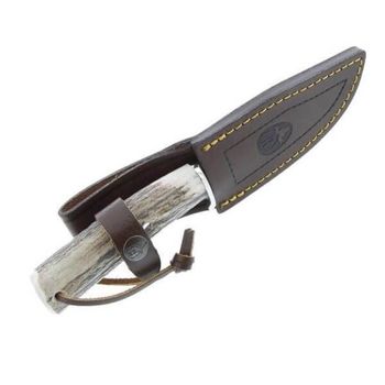Genuine stag horn handle with single safety to protect the index finger, stainless steel guard.