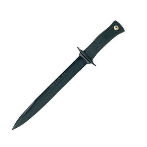The sheath is made of high quality leather with black stitching and a Muela logo.