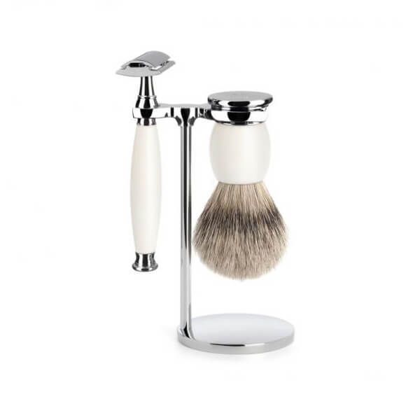 Muhle Fusion Sophist porcelain 3-piece shaving set, fine brush.