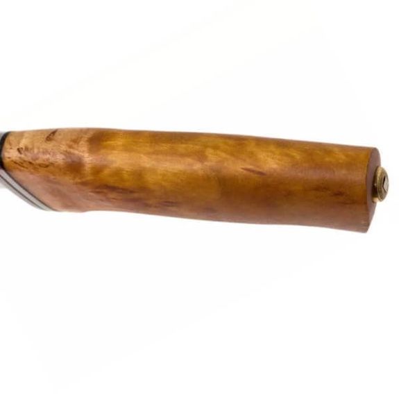Birch wood handle with a steel bolster tip that also resists corrosion.