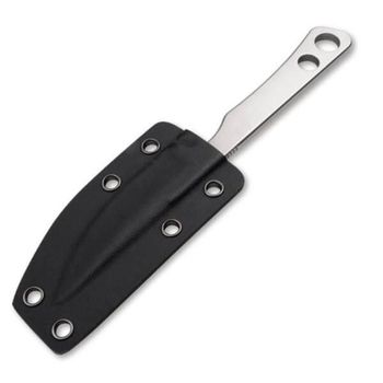 Die glatte Klinge aus D2-Stahl hat eine Drop Point Form und ist weiß. Ein ausgeprägter Ricasso, der einen dekorativen Akzent setzt.
