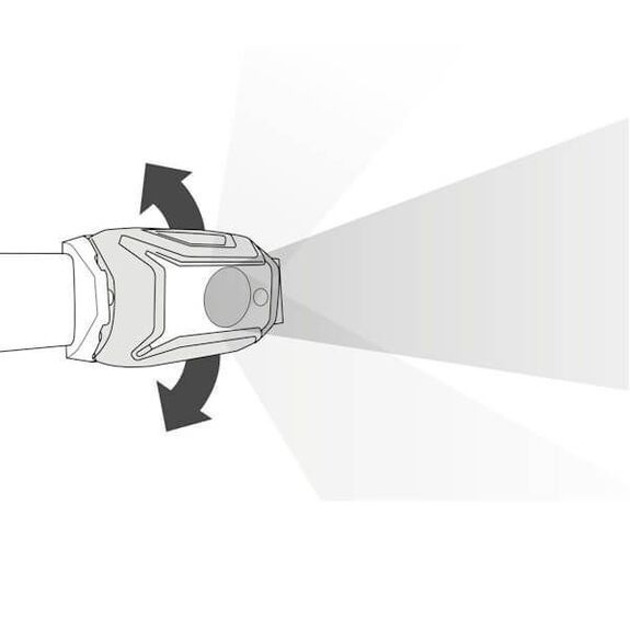 Compact rechargeable headlamp for proximity lighting and short trips. 450 lumens.