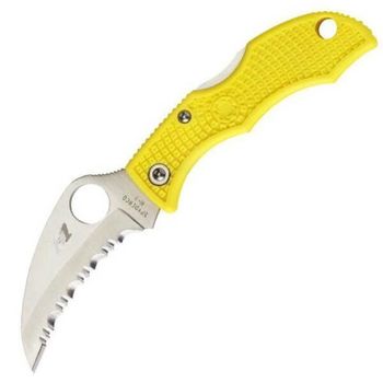 Spyderco LadyBug salt yellow by Sal Glesser with serrated blade.