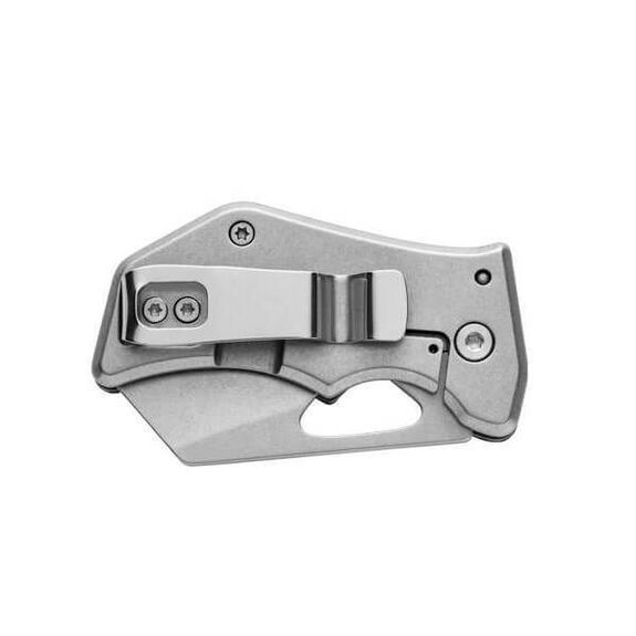 5 cm lange, sheepfootförmige Klinge aus rostfreiem 440C(57-58HRC)-Stahl mit Stonewashed-Finish.